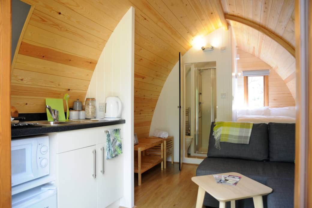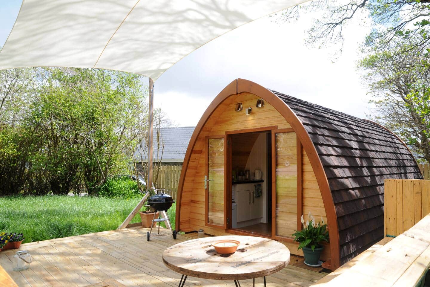 The Pod is a unique glamping experience. Small but perfectly formed, the space incorporates a luxurious double bed, shower room, kitchenette and couch inside. With a large deck for sitting out and BBQ